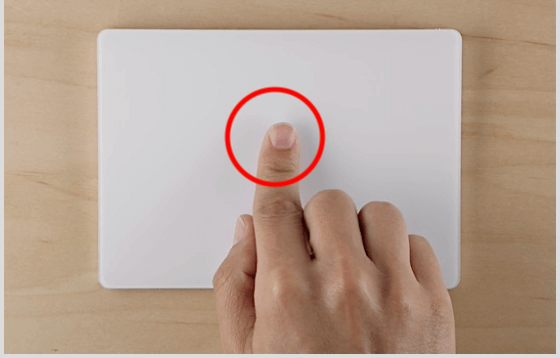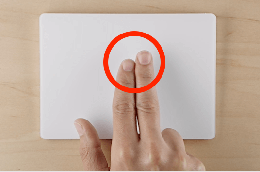 우선 클릭과 보조 클릭입니다. 아주 기본적인 제스처입니다. 그냥 한 손가락으로 살짝 누르면 클릭이 되며, 두 손가락으로 누르면 보조클릭이 됩니다. 원래는 보조 클릭 같은 기능이 지원되지 않았으나 마우스가 활용 범위가 넓어지면서 기본적인 복사, 잘라내기, 붙여 넣기 등이 이 보조 클릭으로 실행되며 그밖에 단어 찾아보기, 공유하기 기능도 이 보조 클릭에서 함께 지원합니다. 작동하지 않는다면 아까 위에서 언급한 기본 설정에서 두 손가락 보조 클릭이 꺼져 있지 않은지 확인해 보세요.