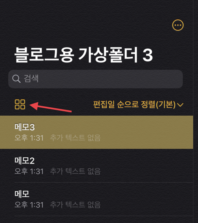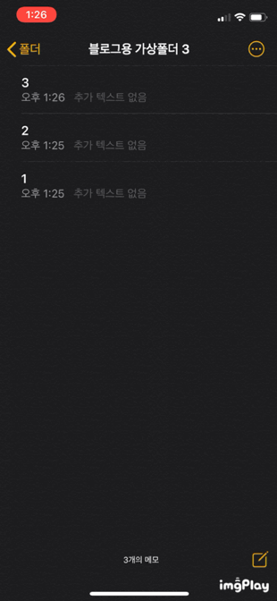 이렇게 "블로그용 가상폴더 3"이 "블로그용 가상폴더" 폴더의 하위 메뉴로 들어간 것을 확인할 수 있죠. 이렇게 하면 더 손쉽게 아이폰의 메모와 폴더 관리를 하실 수 있으실 겁니다.