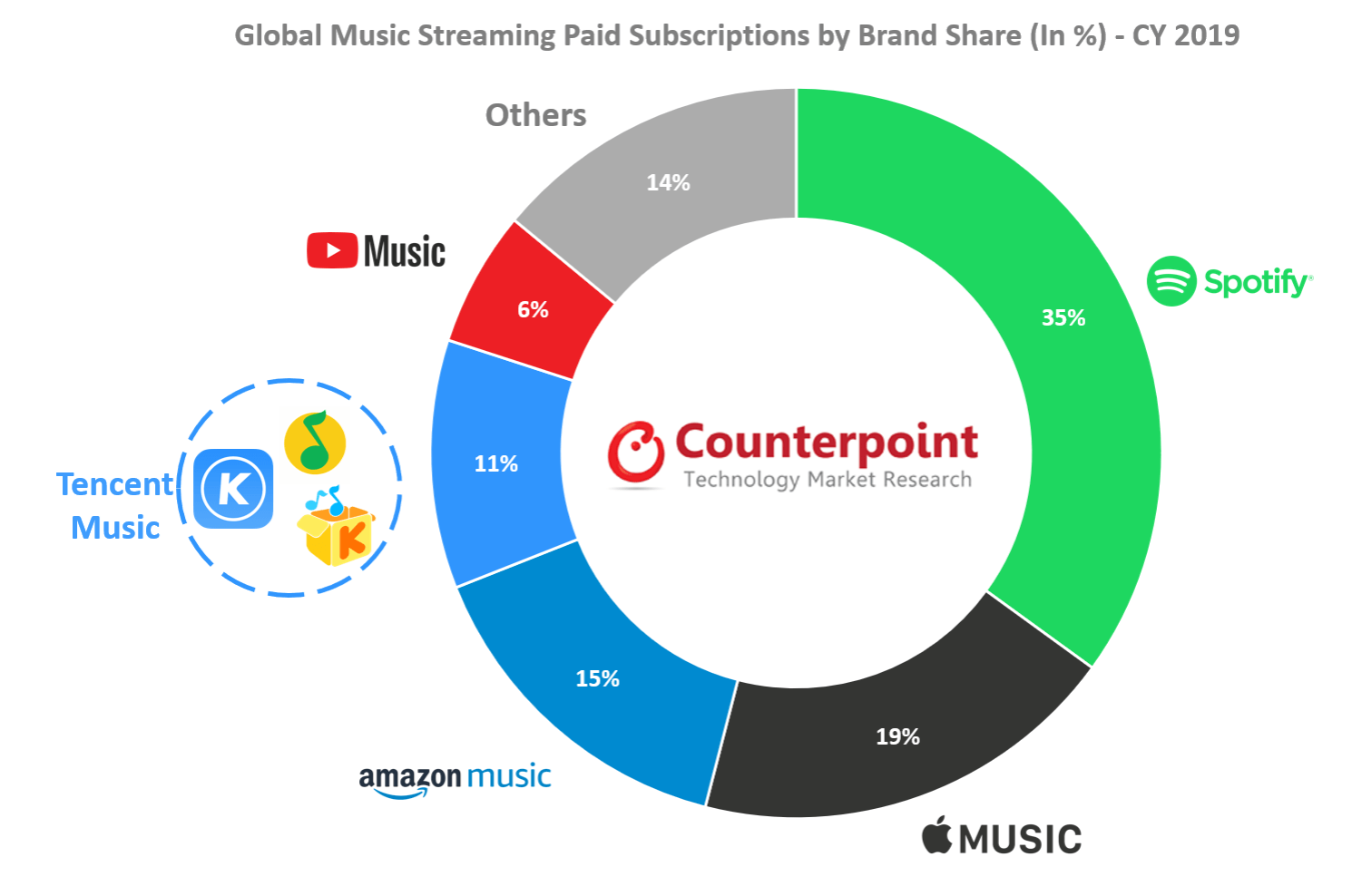 이렇게 경쟁이 치열한 음원 시장에 세계 최대의 음원 서비스인 스포티파이가 가담할 것으로 보이는데요. 2008년에 스웨덴에서 출범한 업체이며, 2019년 기준 35%의 세계 음원 시장 점유율을 보여주고 있습니다. 5,000만 개가 넘는 음원을 보유하고 있다고 알려져 있으며 이용자 수만 2억 5천만 명이 넘습니다.(유료 요금제 가입자 수는 1억 2천만 명이 넘는다.) 점유율도 2위인 애플 뮤직과 비교했을 때 2배 가까운 차이를 보여주고 있습니다. 이러한 스포티파이가 국내에 곧 출시한다고 하는데요.