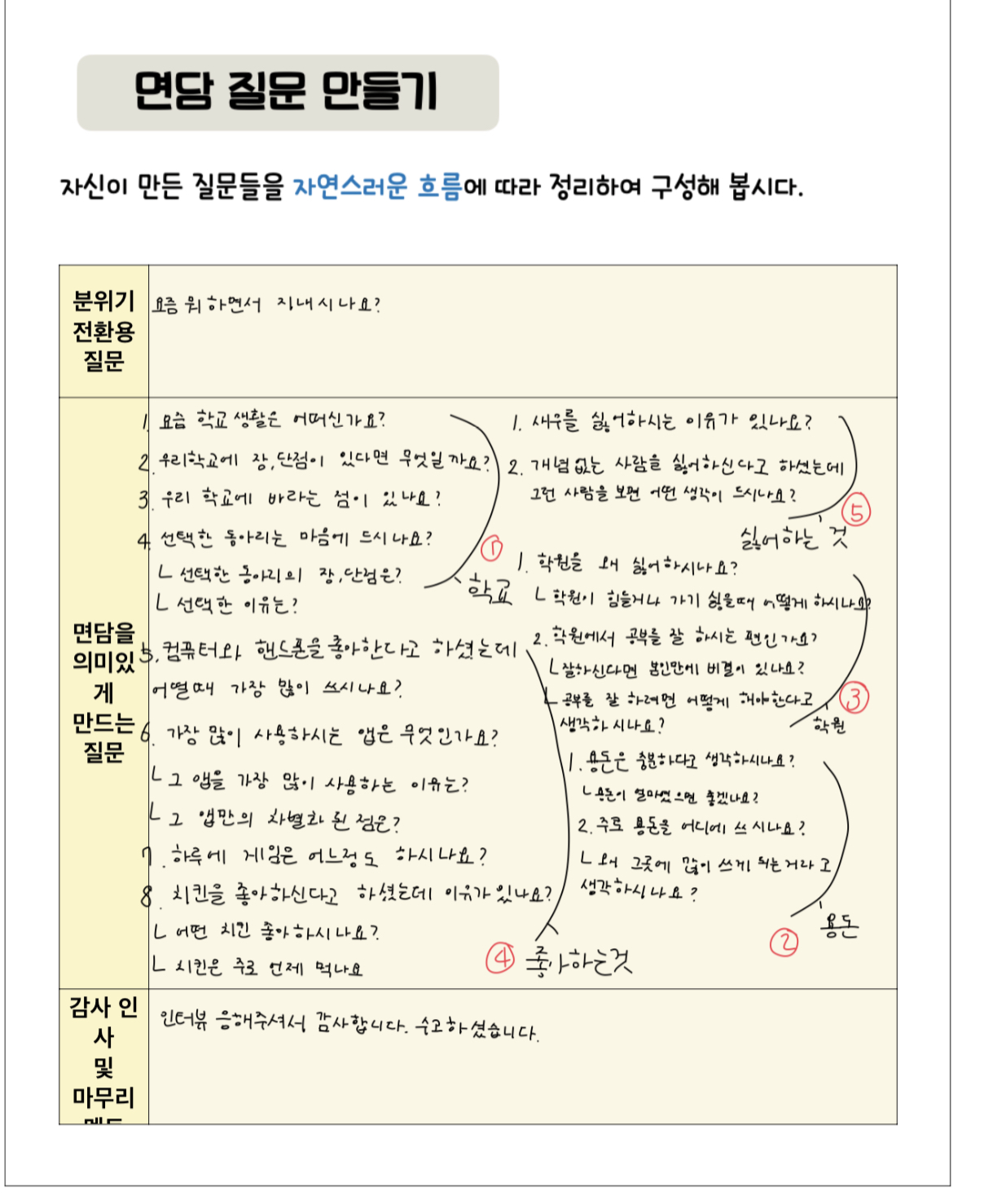2. 면담의 기본 개념 배우고 올바른 질문의 조건 생각하기